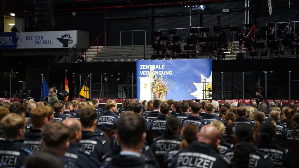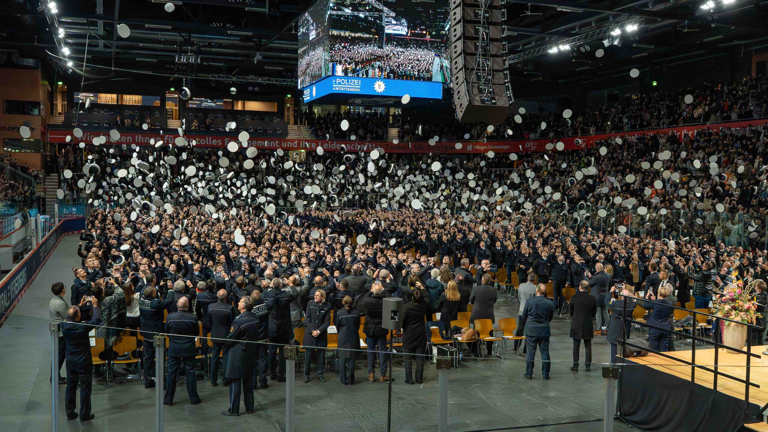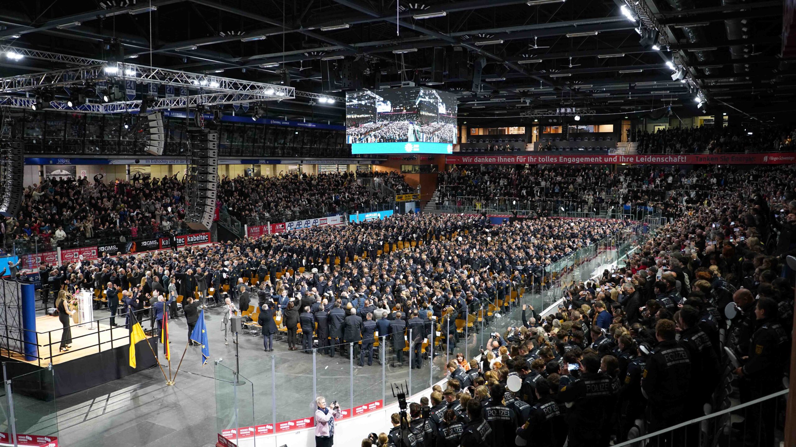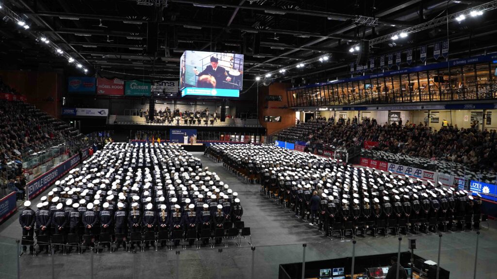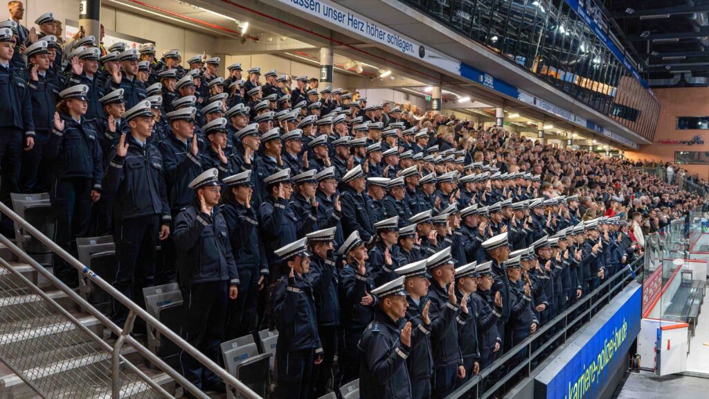 Am 17.10.2025 findet in der Helios Arena in Villingen-Schwenningen die erste Zentrale Vereidigung eines gesamten Einstellungsjahrgangs der Polizei Baden-Württemberg statt. Rund 1.200 Polizeibeamtinnen und Polizeibeamten des Einstellungsjahrgangs 2025 werden gemeinsam ihren Diensteid ablegen.