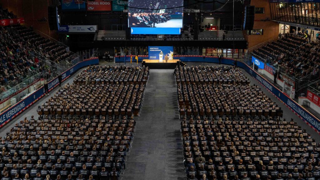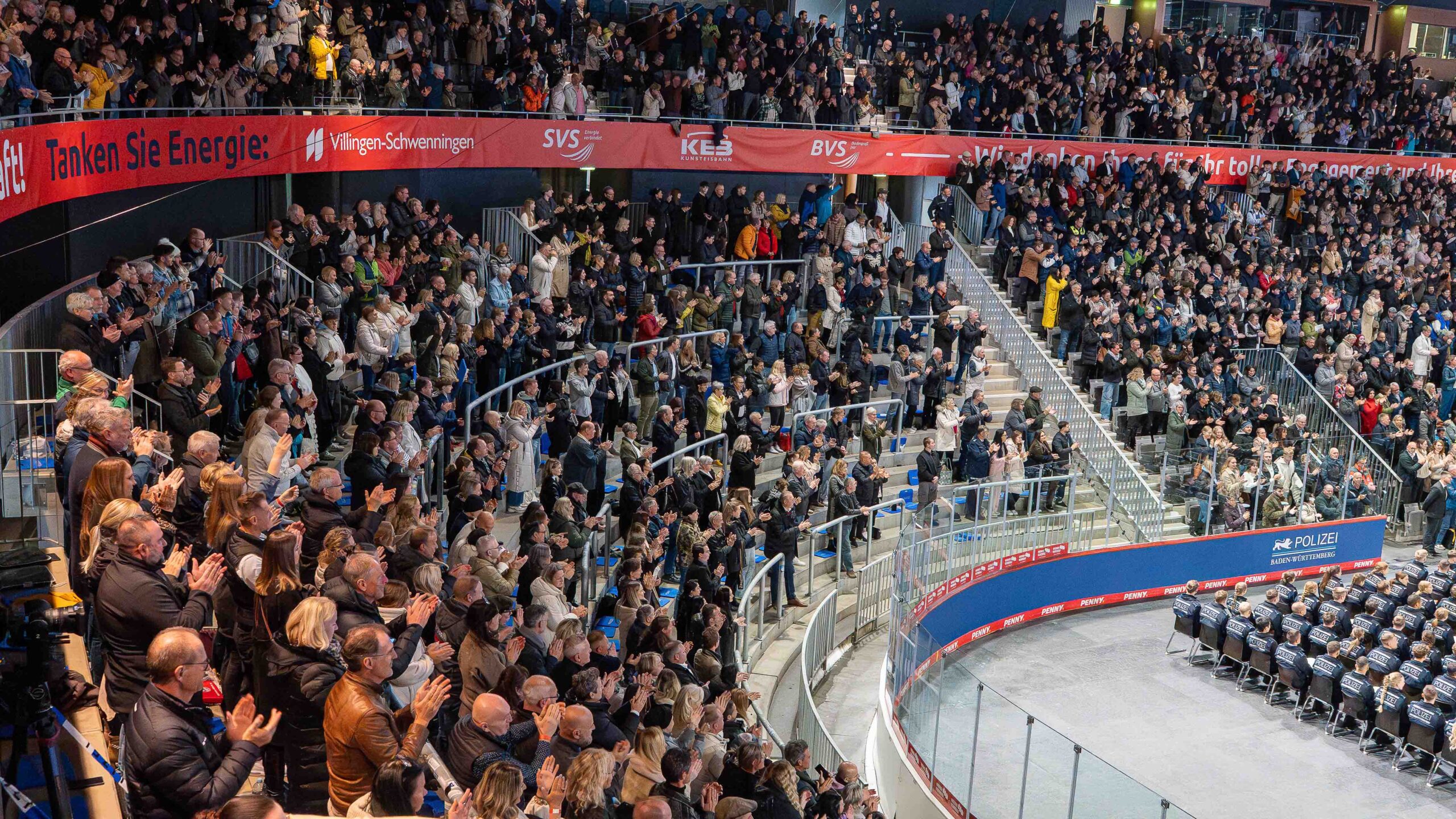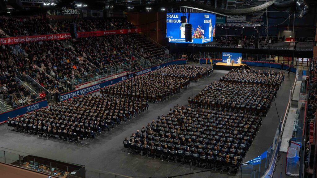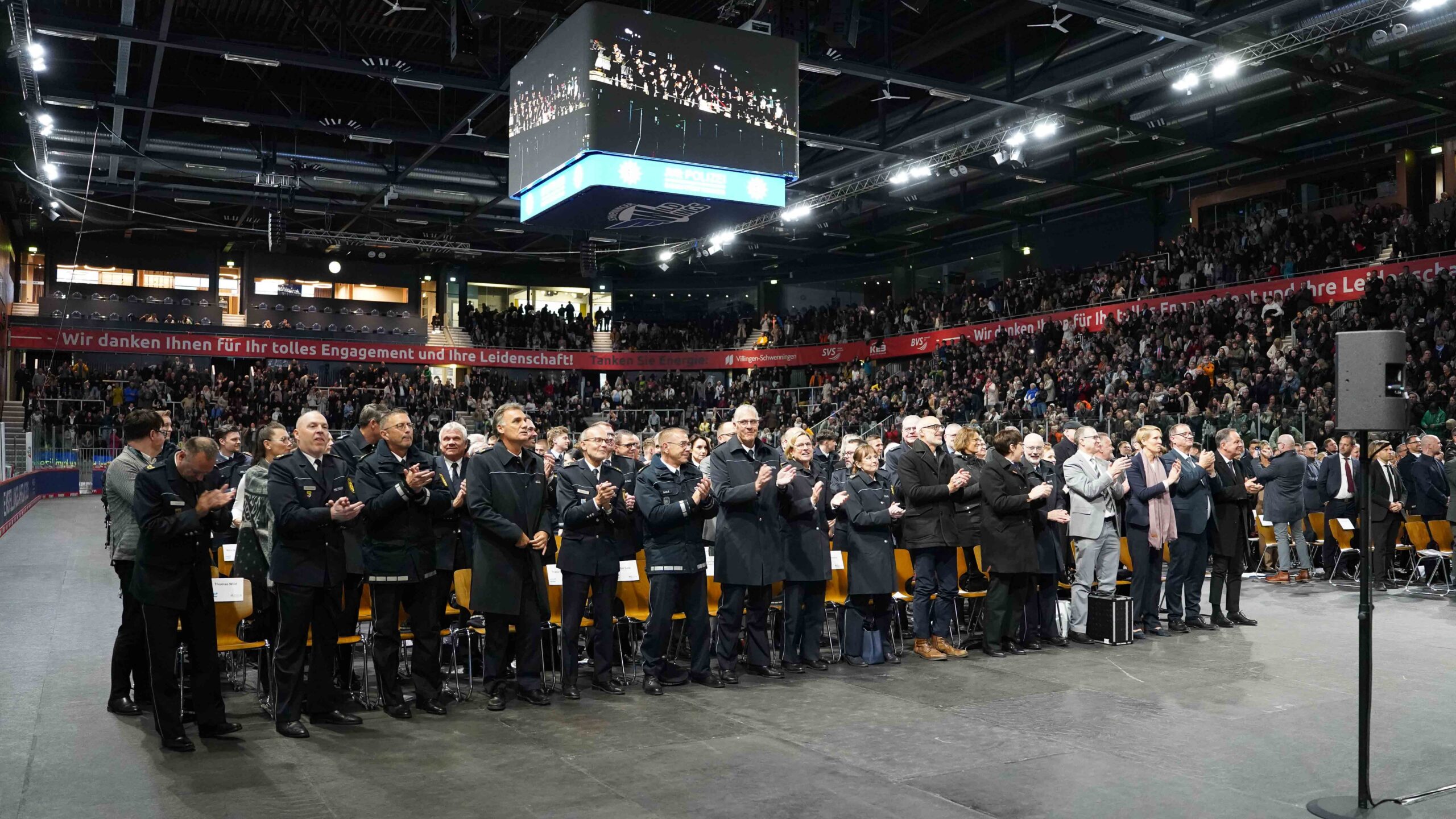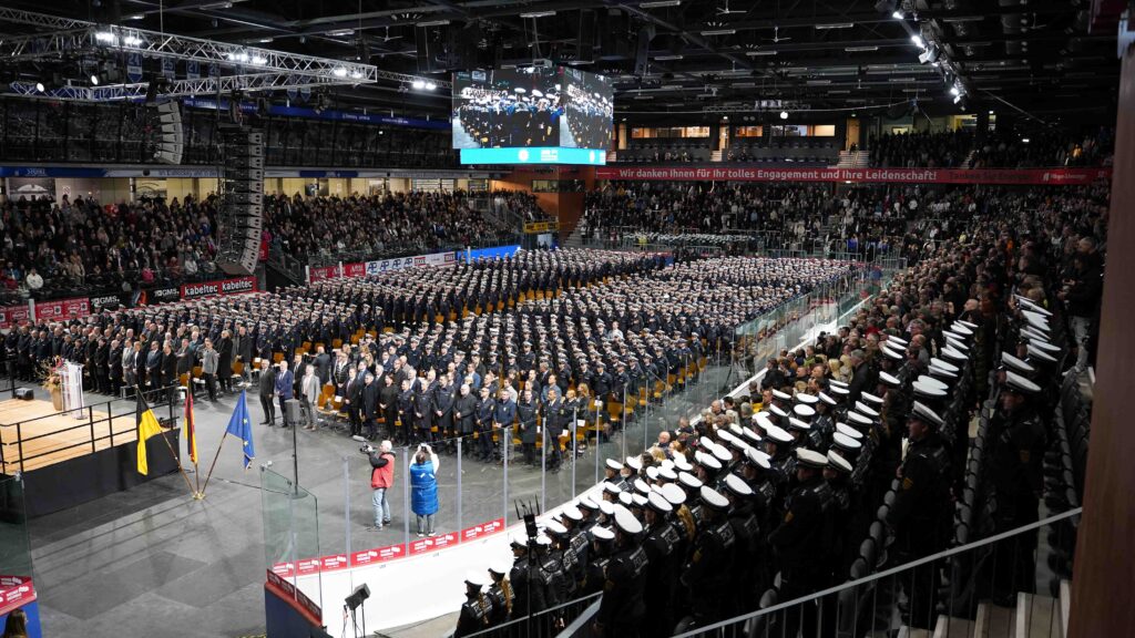 Am 17.10.2025 findet in der Helios Arena in Villingen-Schwenningen die erste Zentrale Vereidigung eines gesamten Einstellungsjahrgangs der Polizei Baden-Württemberg statt. Rund 1.200 Polizeibeamtinnen und Polizeibeamten des Einstellungsjahrgangs 2025 werden gemeinsam ihren Diensteid ablegen.