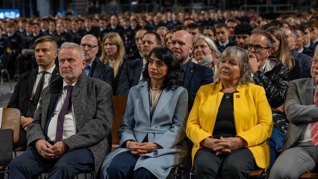 Die Vereidigung selbst führte Landespolizeipräsidentin Dr. Hinz durch, ein wichtiger Moment, der die jungen Beamtinnen und Beamten in ihre neuen Rollen als Polizeibeamtinnen und Polizeibeamten einführte. Der Abschluss der Zeremonie war besonders emotional: die 1.220 frisch vereidigten Kolleginnen und Kollegen warfen gleichzeitig ihre Schirmmützen in die Luft.