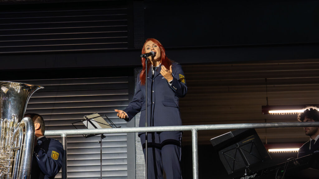 Die Veranstaltung begann mit einer öffentlichkeitswirksamen Ankunft der Anwärterinnen und Anwärter. Von den Ausbildungsstandorten aus fuhren sie mit Bussen zum Messegelände und marschierten dann, begleitet vom Freizeitorchester der Polizei Baden-Württemberg, zur Helios Arena. Dieser eindrucksvolle Polizeimarsch, an dem über 1.300 Kolleginnen und Kollegen teilnahmen, zog die Aufmerksamkeit der Öffentlichkeit auf sich und setzte den Ton für den Rest des Tages.