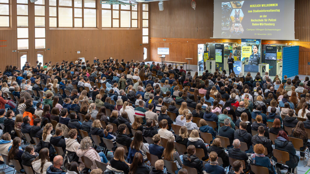 Der landesweite Studieninformationstag 2025 fand am Mittwoch, 19.11.2025, statt. Auch die Hochschule für Polizei Baden-Württemberg beteiligte sich mit einer Veranstaltung auf dem Campus in Villingen-Schwenningen als dem zentralen Studienstandort daran.
